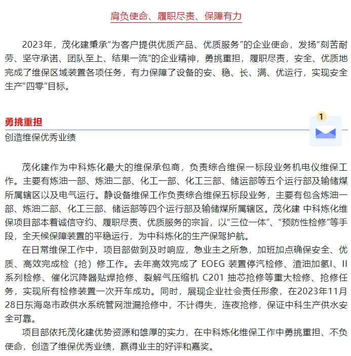 喜報(bào):榮獲中科煉化“2023年度業(yè)務(wù)外包星級(jí)承包商”稱號(hào)