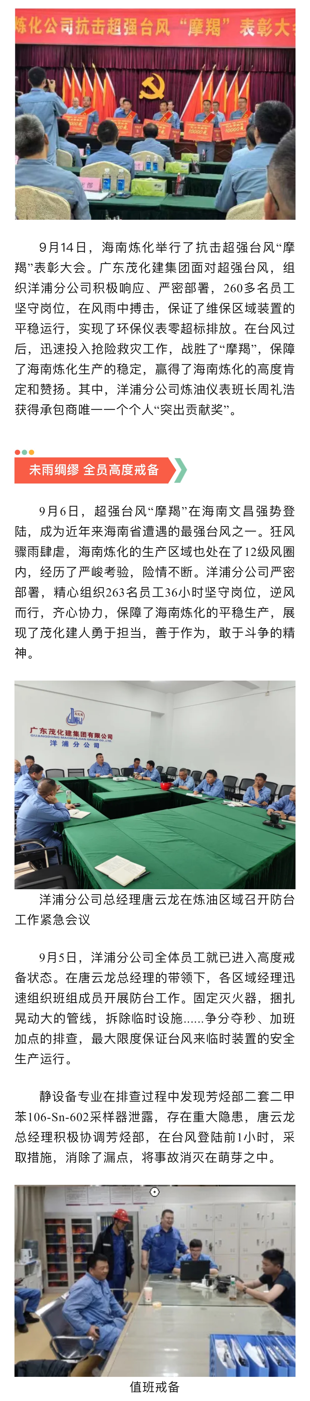 茂化建洋浦分公司抗擊超強(qiáng)臺(tái)風(fēng)"摩羯”獲業(yè)主高度表?yè)P(yáng)