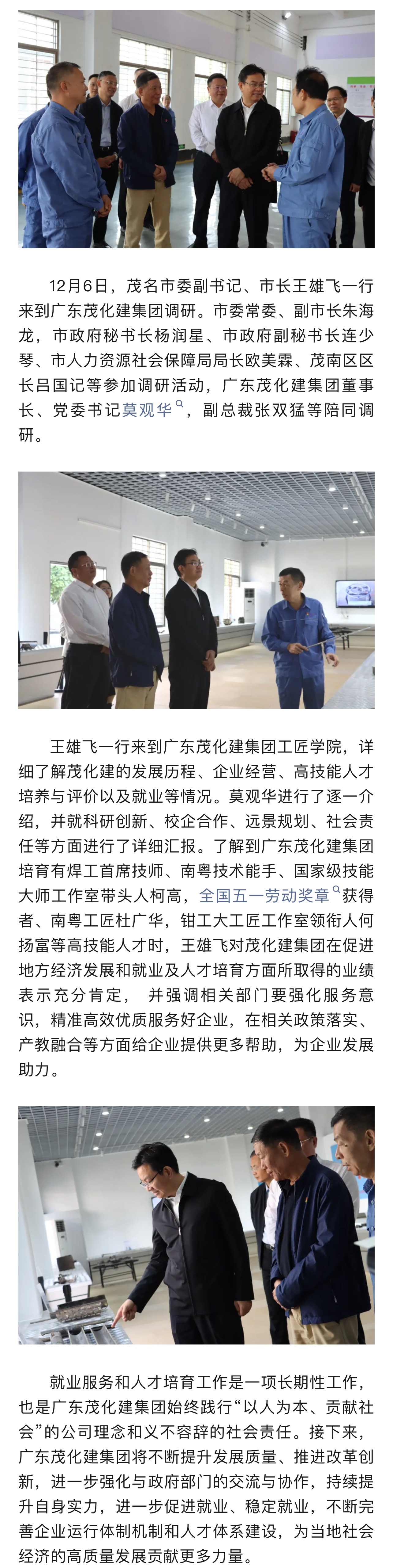 茂名市委副書記、市長王雄飛到廣東茂化建集團視察指導(dǎo)工作