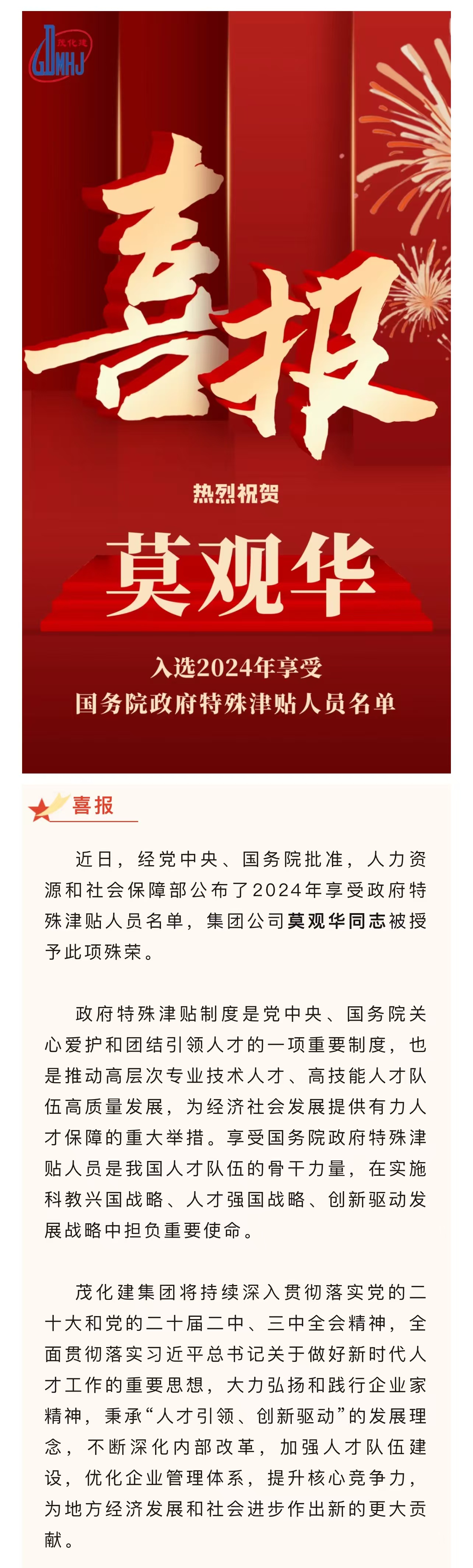 喜報(bào):莫觀(guān)華入選享受?chē)?guó)務(wù)院政府特殊津貼人員名單