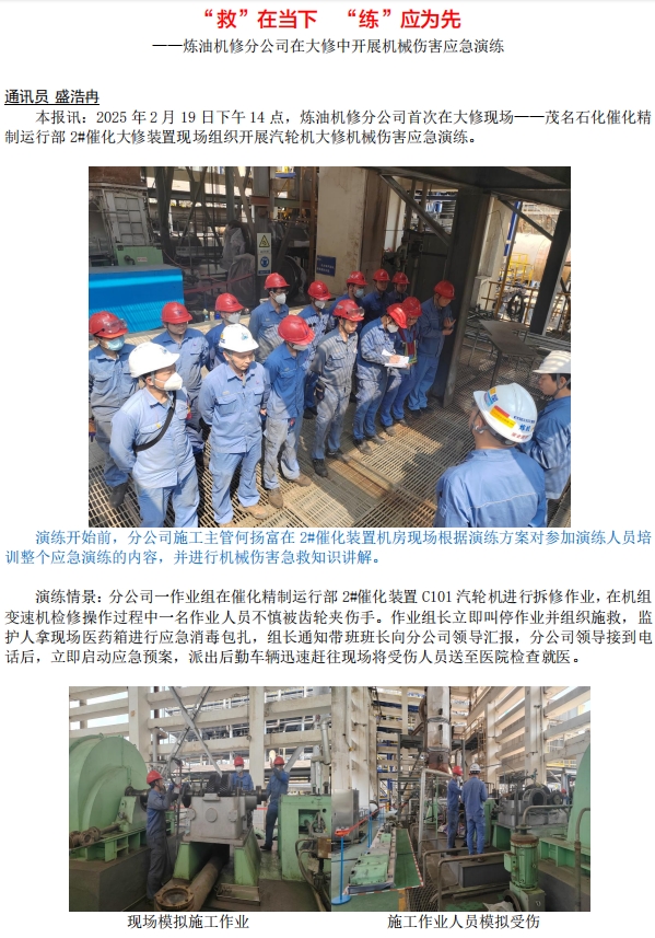 煉油機修分公司在大修中開展機械傷害應急演練