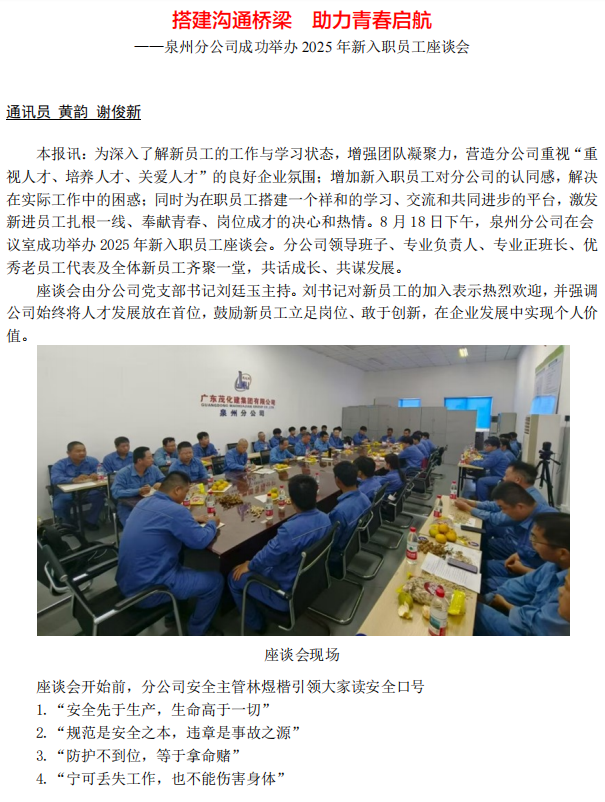 泉州分公司成功舉辦 2025 年新入職員工座談會(huì)