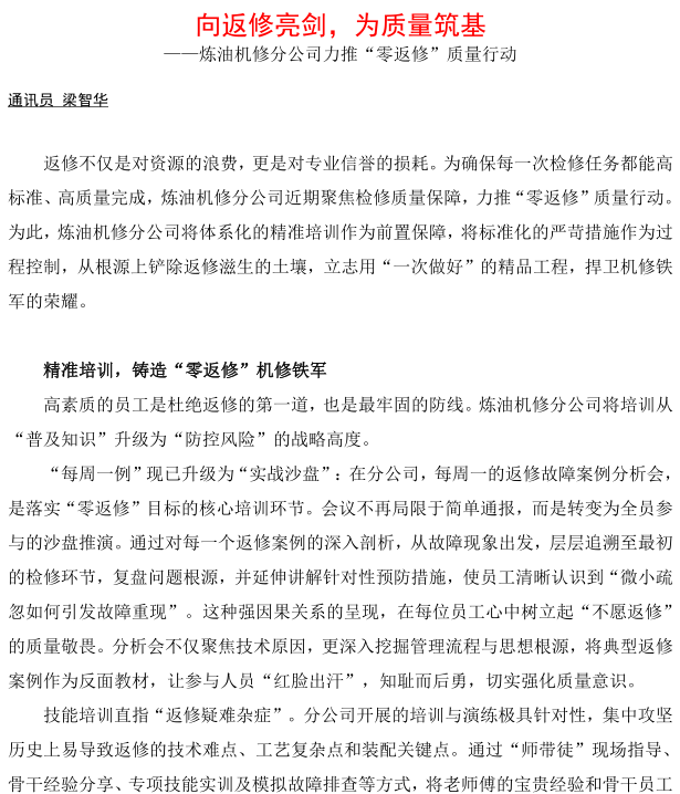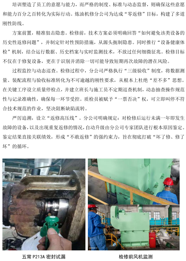 煉油機(jī)修分公司力推“零返修”質(zhì)量行動