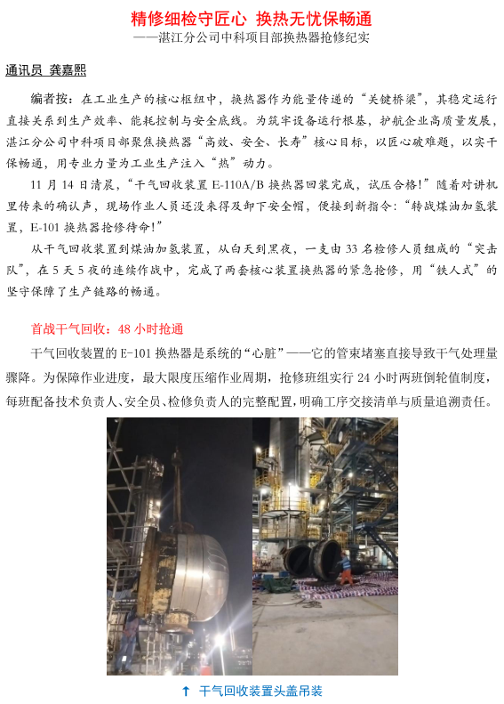 湛江分公司中科項目部換熱器搶修紀實