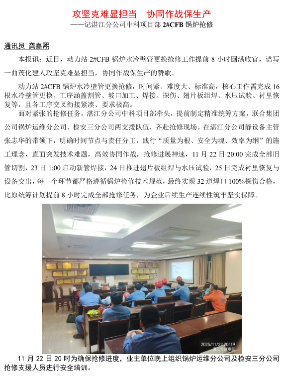 湛江分公司中科項目部 2#CFB 鍋爐搶修