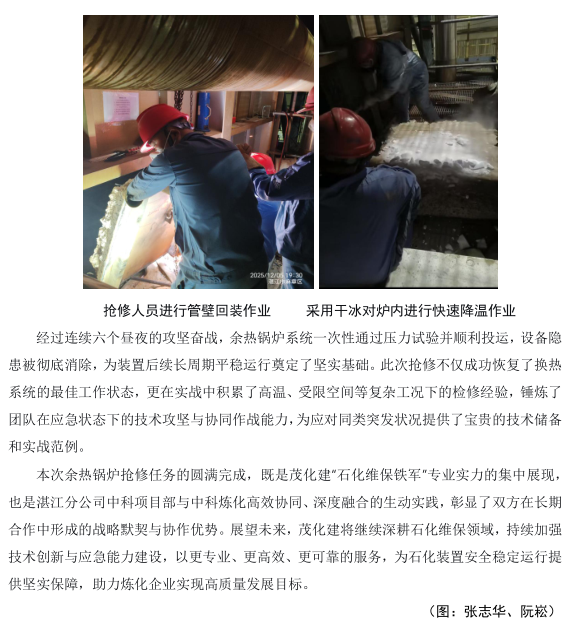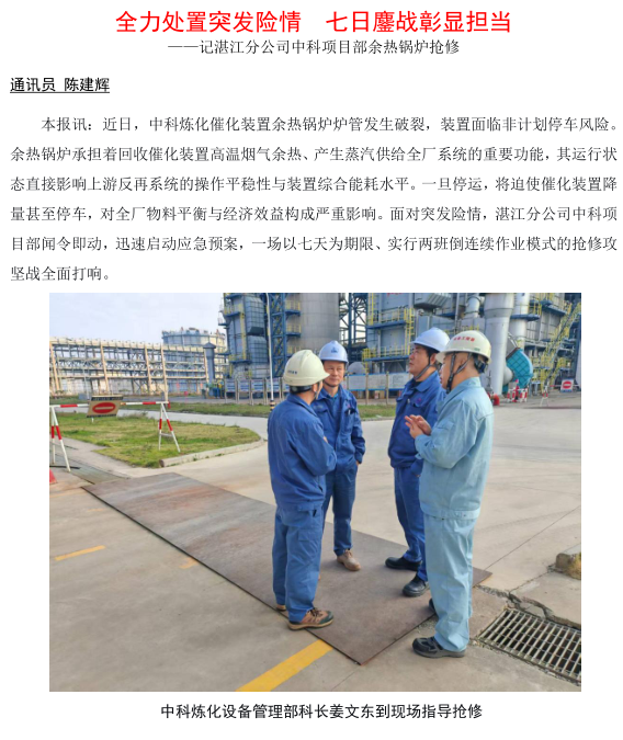 湛江分公司中科項目部余熱鍋爐搶修