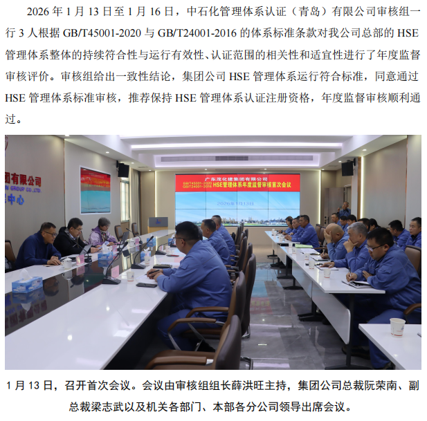 集團(tuán)公司順利通過 HSE 管理體系年度監(jiān)督審核