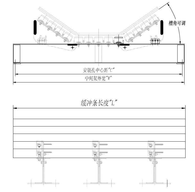Product functions and uses: The buffer bed is installed at the receiving area of the belt conveyor transfer point, which is used to reduce the impact damage to the belt when the material falls, which can effectively protect the belt and extend the
