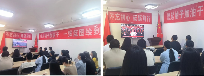 活動(dòng)開(kāi)始,全體黨員、積極分子、群眾的目光齊齊投向了大屏幕,《松花江上》《在太行山上》《保衛(wèi)黃河》《沒(méi)有共產(chǎn)黨就沒(méi)有新中國(guó)》,一首首誕生于抗戰(zhàn)烽火中的經(jīng)典歌曲連唱,讓大家重溫中華民族那段艱苦卓絕、氣壯山河的崢嶸歲月。80響禮炮震徹云霄,國(guó)旗護(hù)衛(wèi)隊(duì)護(hù)送五星紅旗,從人民英雄紀(jì)念碑前一路行進(jìn)。官兵們整齊劃一的腳步叩擊大地,如同歷史從遠(yuǎn)方傳來(lái),與你我澎湃的心跳共振。國(guó)歌奏響,國(guó)旗冉冉升起。80年前的苦難與堅(jiān)守,中華民族的奮斗與榮光,凝聚成那一抹飛揚(yáng)的紅,在風(fēng)中盡情綻放。13個(gè)徒步方隊(duì)在黨旗、國(guó)旗、軍旗的引領(lǐng)下,鏗鏘正步踏過(guò)天安門(mén)廣場(chǎng),每一幀盡顯大國(guó)威儀。戰(zhàn)旗獵獵,鐵流滾滾。80面抗戰(zhàn)英模部隊(duì)榮譽(yù)旗幟組成的戰(zhàn)旗方隊(duì),承載著歷史榮光浩蕩而來(lái)。震撼的場(chǎng)景、昂揚(yáng)的氣勢(shì)在黨員們心間久久回蕩,心中更是油然而生一份無(wú)與倫比的國(guó)家榮耀與民族自豪。看到觀禮席上,抗戰(zhàn)老兵顫抖著敬禮。這是跨越時(shí)空的家國(guó)接力,是血脈與信念的賡續(xù),也是今日向歷史獻(xiàn)上的崇高致敬!